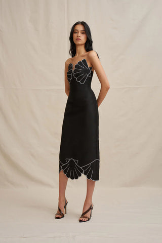 By Johnny Kimora Shell Strapless Midi Dress- Black & White