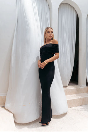 The Louise Maxi dress is an elegant maxi length dress that features a ruched off the shoulder strapless neckline. Style the Louise dress with a pair of heels for a stylish classic look.