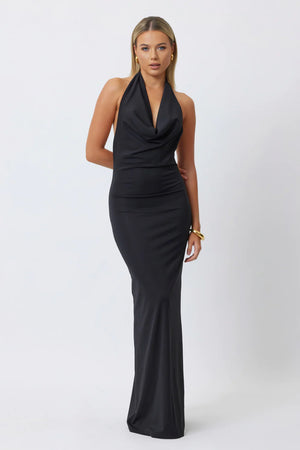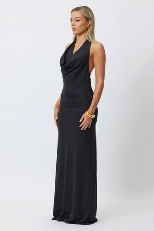 The Marieanne Maxi dress is a classic and elegant dress perfect for your next formal event. The floor length maxi dress features a cowl neckline with a low back. The dress has an invisible zip at the back for fastening. The Marieanne maxi dress is available in black.