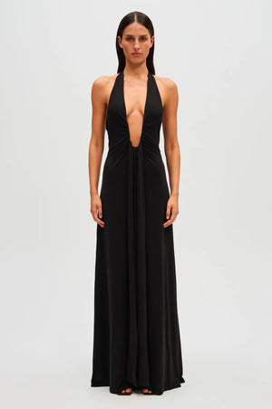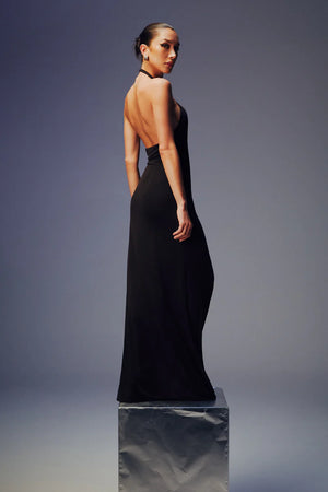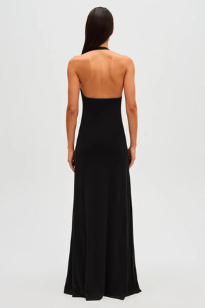 The Jennifer Cupro Maxi Dress in Black, a captivating and sexy silhouette that is a true reflection of MISHA's brand DNA.