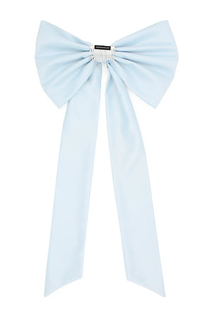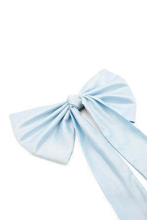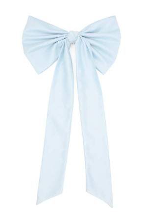 The Morgan & Taylor Carmen Bow in Blue is a limited piece, made in our small studio in Melbourne. It is a playful and dramatic style, reninicent of classic glamour, thanks to the large satin bow and tails. The bow is easily styled into the hair for many different looks. Includes an attached metal comb for easy styling.