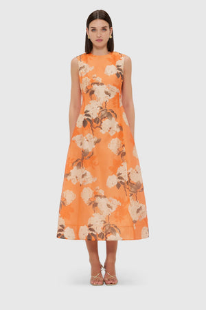 Leo Lin Cleo Sleeveless Midi Dress - Hydrangea Print in Tangerine