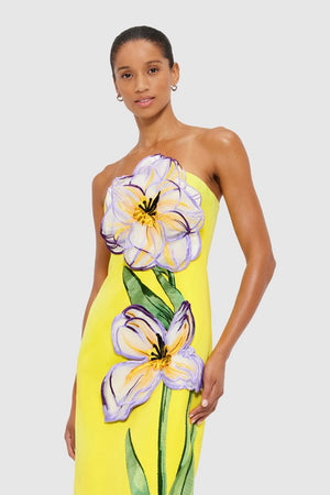 Leo Lin Rayna Appliqué Floral Maxi Dress - Iris Print in Yellow