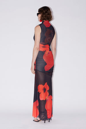 Saemdi Floral Printed Mesh Dress - Black Multi
