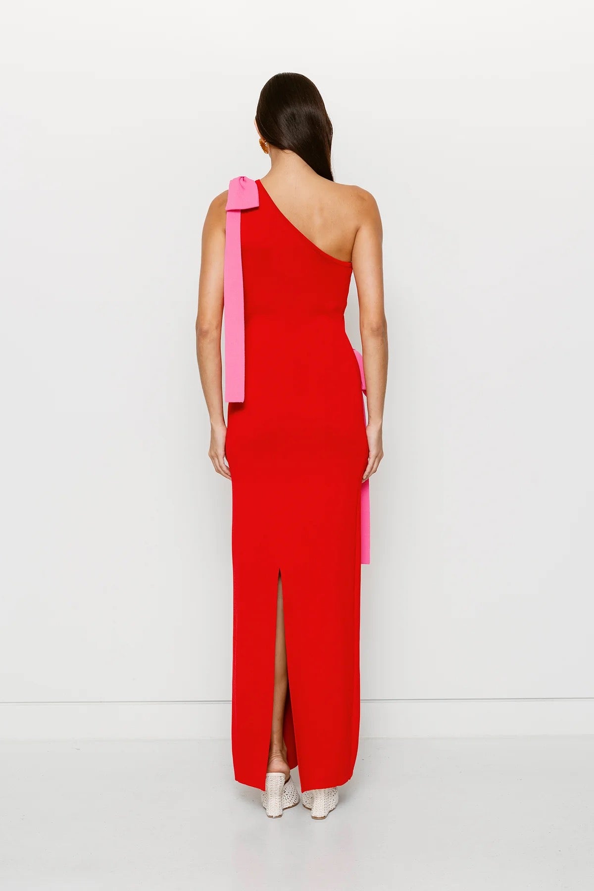 Tie yourself up in the Tacha Maxi Dress. Designed with contrasting bows at the shoulder and hip, in a fluid, body-skimming ribbed knit, it flatters the form while keeping things playfully refined. A pull on, easy wearing knit, that's made for effortless event wear, lingering dinners, and any moment that calls for a little extra elegance.