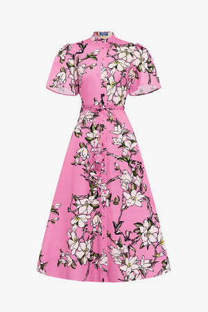 Leo Lin Bianca Short Sleeve Midi Dress - Pink Magnolia Print