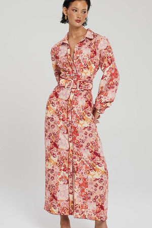 Winona Selca Button Up Midi Dress - Red Print