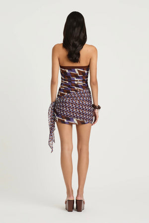 The Marnie Mini Dress features a straight neckline with halter straps and flattering ruching through the bust and waist. Designed in a mini length, it’s finished with a soft scarf tie detail that wraps around the wearer’s hip.