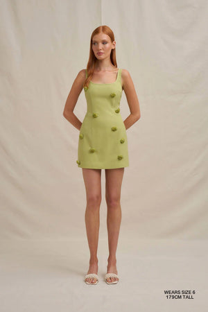 Custom colour matched glass bead clusters, which have been individually hand crafted & hand sewn on the dress.