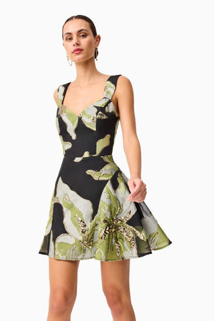 Elliatt Elysia A Line Mini Dress - Black & Green Floral