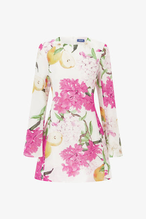 Blossoms and pears tangled together on a soft canvas. Fresh, whimsical, and just a little nostalgic — like orchard days in bloom.