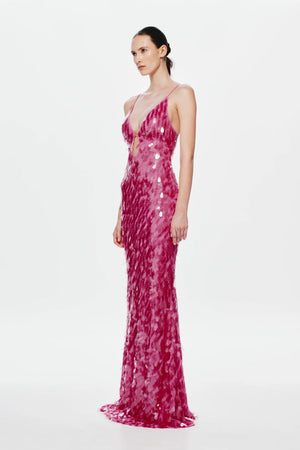 Misha Collection Sapphire Sequin Maxi Dress - Fuchsia