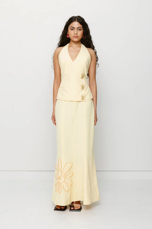 Bring sunshine to your wardrobe with the Inka Maxi Skirt, a playful yet stylish statement piece in vibrant Butter. Featuring custom TWG embroidery and a godet-detailed hem, this skirt effortlessly blends fun with sophistication. Its versatile design allows you to wear it on its own for a bold pop of colour or pair it with the matching top for a perfectly coordinated look. With its cheerful vibe and flattering silhouette, the Inka Maxi Skirt is sure to brighten any outfit.