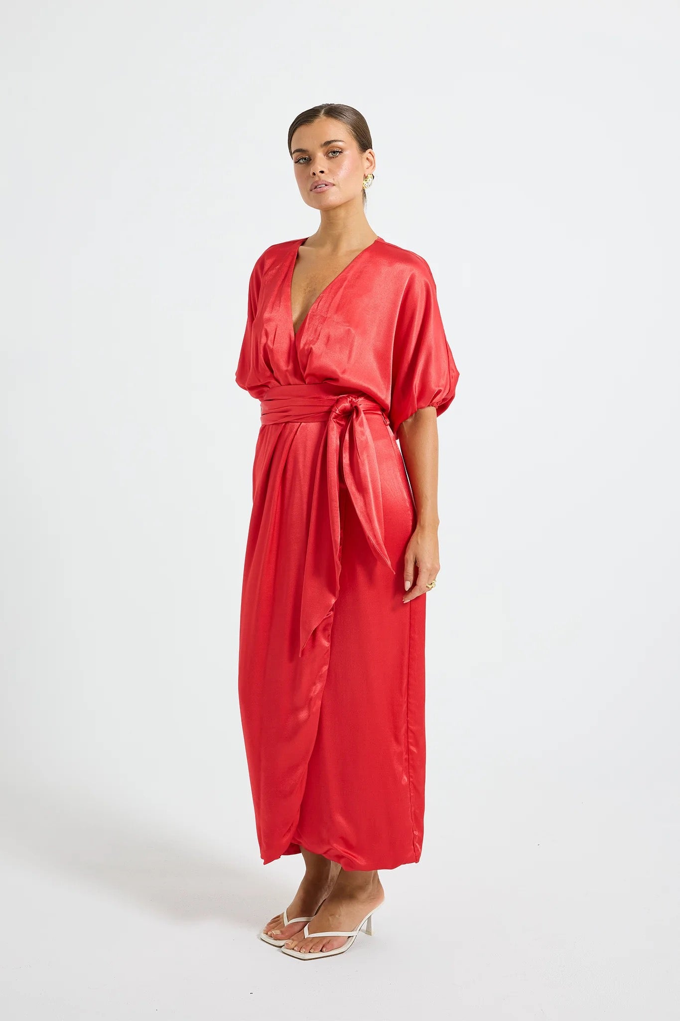 Pasduchas Quinn Wrap Midi Dress - Poppy