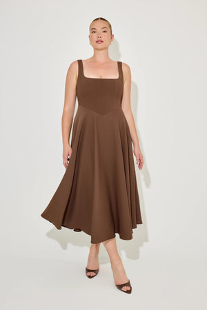 We've reimagined our signature square neck midi with a fresh, low waist silhouette, now in a rich olive hue. This dress features a flattering square neckline with built-in cups for support and the most elegant shaping. The low waist adds a modern twist, creating a sophisticated yet unique look.