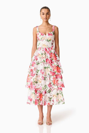 Elliatt Roselle Frill Midi Dress - White Floral