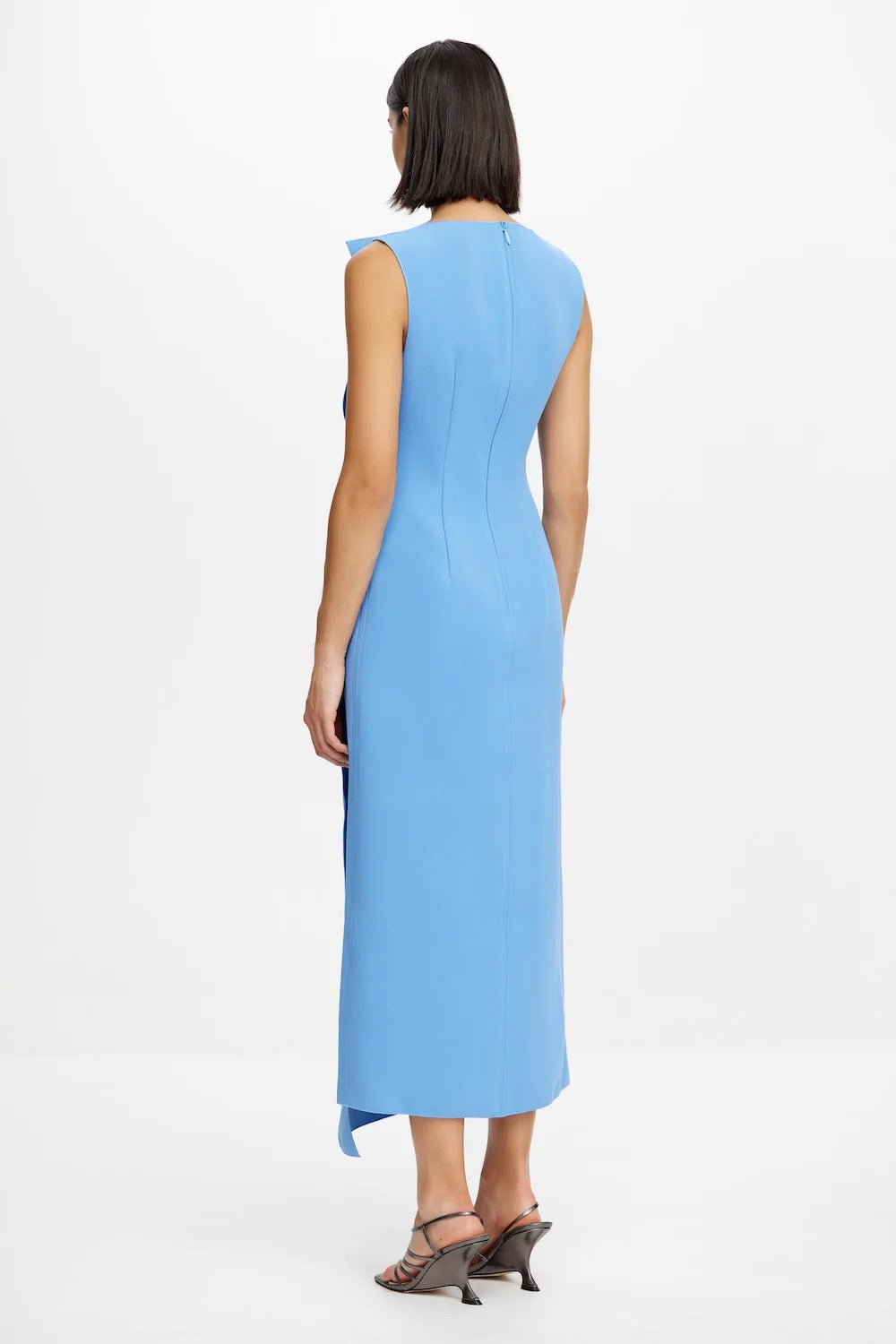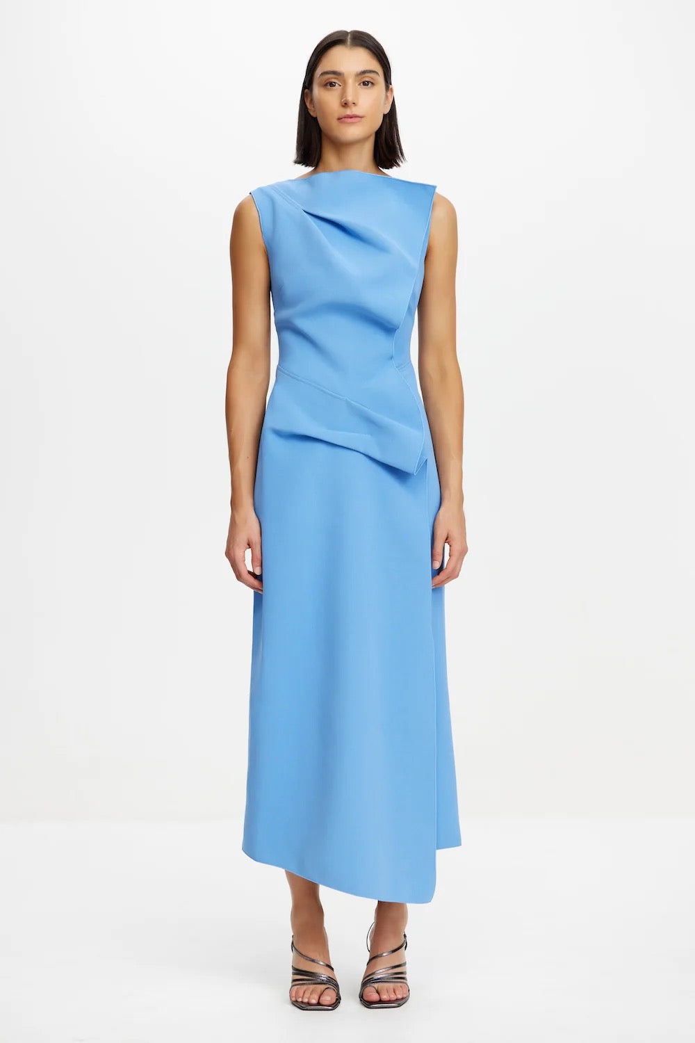 Introducing the Normanhill Midi Dress in Hydrangea, a bold yet sophisticated design that commands attention. Crafted in bonded fabric for a structured fit, this sleeveless silhouette features artful draping and an asymmetrical hemline for a modern twist. A side-seam invisible zip ensures a seamless finish, making this dress an effortlessly striking choice for evening events or special occasions.