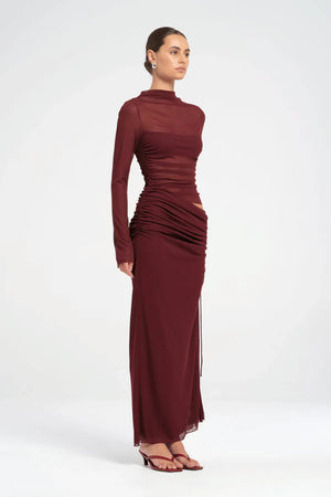 The Mable Maxi Dress is a timeless, elevated silhouette perfect for evening occasions. Crafted from soft stretch crepe, it features a halter neckline with a front twist detail and a striking cut-out at the bodice. The underbust seam and full-length design create an elegant and flattering silhouette. A back split ensures ease of movement while adding just the right amount of drama. Fully lined and designed for comfort without compromising style.