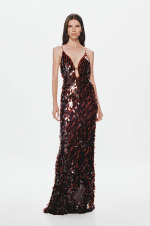 The Sapphire Sequin Maxi Dress in Fig, event-dressing redefined.