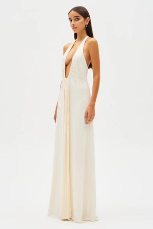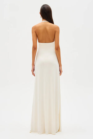The Jennifer Cupro Maxi Dress in Ivory, a captivating and sexy silhouette that is a true reflection of MISHA's brand DNA.