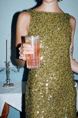 Introducing the Cabine Boatneck Mini Dress in Moss — a statement sequin mini designed to captivate after dark. Fully lined with a flattering boat neckline and low scoop back, this fitted silhouette features a softly tucked waist and raw hem for modern edge.