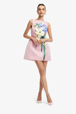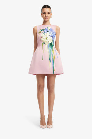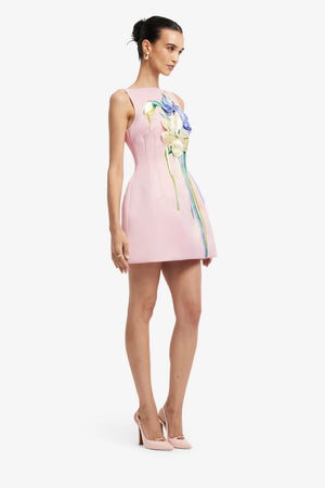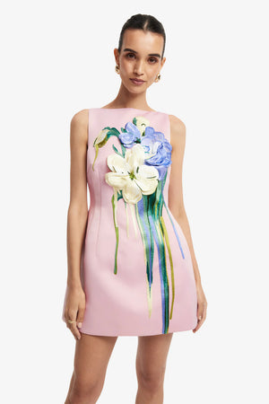 White and lilac bundles feature whimsical dripping stems over a soft blush canvas. This print is a sweet, dream-like escape for modern romantics.