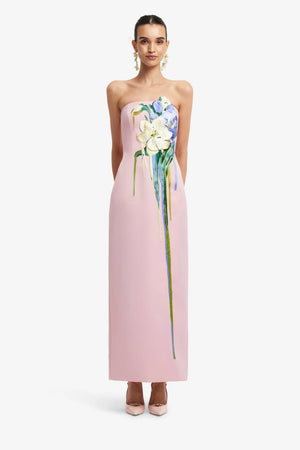Leo Lin Rayna Embroidered Bustier Maxi Dress - Bouquet Print in Pastel Pink