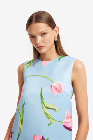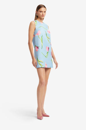 Leo Lin Yvonne Mini Dress - Tulip Print in Blue