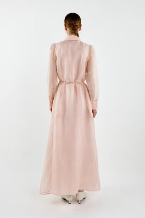 This Julie maxi shirt dress from Sofia Irina is made from silk linen blend and cut to a longline, shirting silhouette. The long sleeve style comes with a self covered rope detachable belt to accentuate the waist.