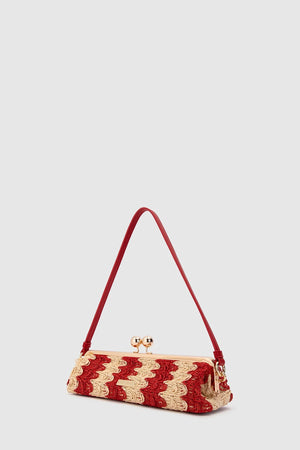 The Kai Shoulder Bag belongs on your shoulder. A petite, sculptural clutch bag, with vintage inspired baguette silhouette, gold clasp hardware, and adorned with abstract resin beads. A piece of wearable art that doubles as a handbag, designed to add a sophisticated, unique focal point to your outfit.