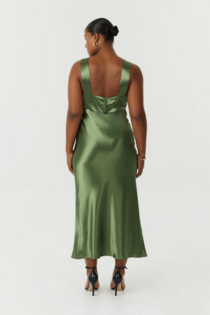 The Satin Gather Bra Bias Slip is a timeless piece that offers a modern approach to delicate femininity. With a deep v-neckline, back button detail and ankle-length finish combine to create a striking shape.